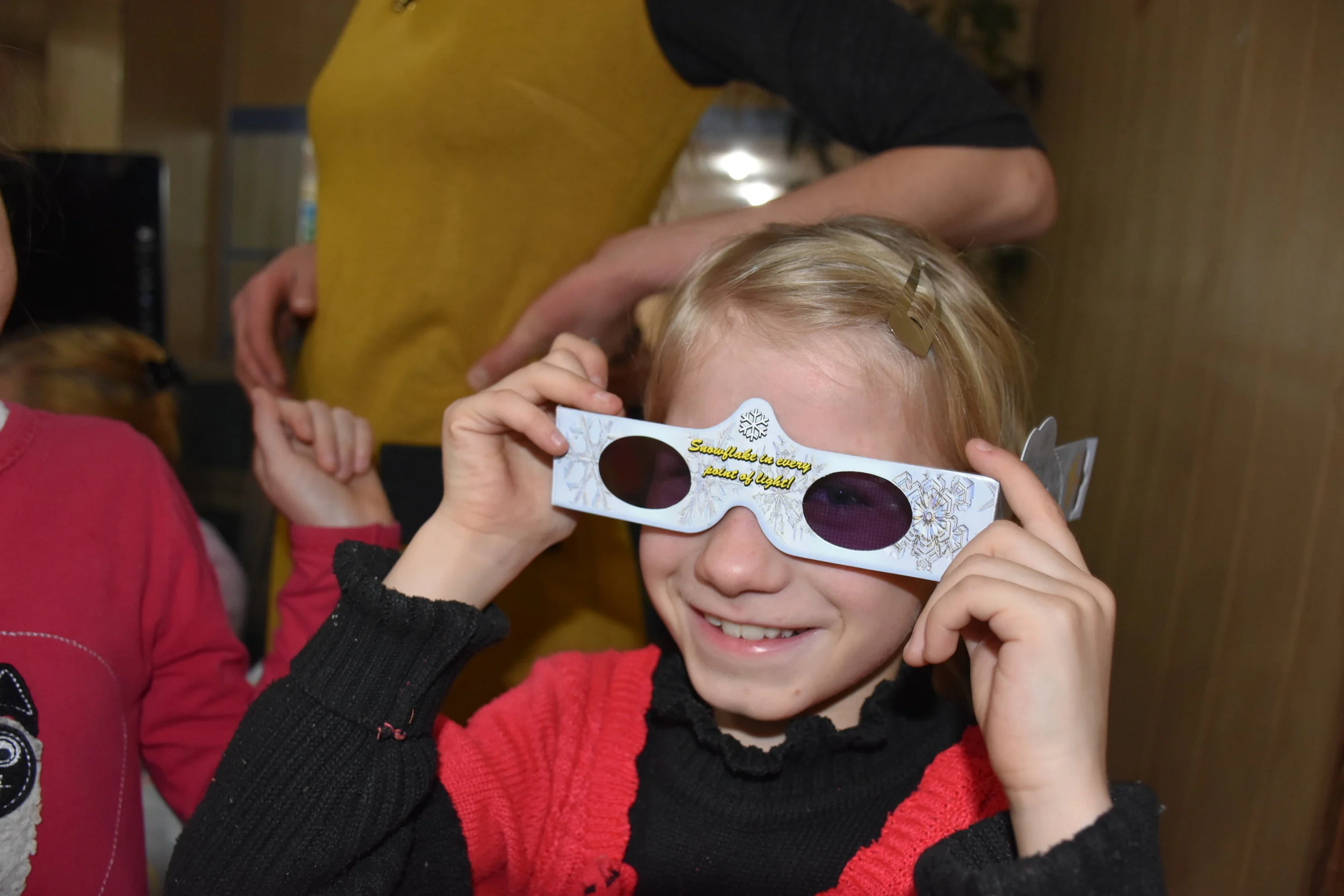 Glasses made lights look like snowflakes