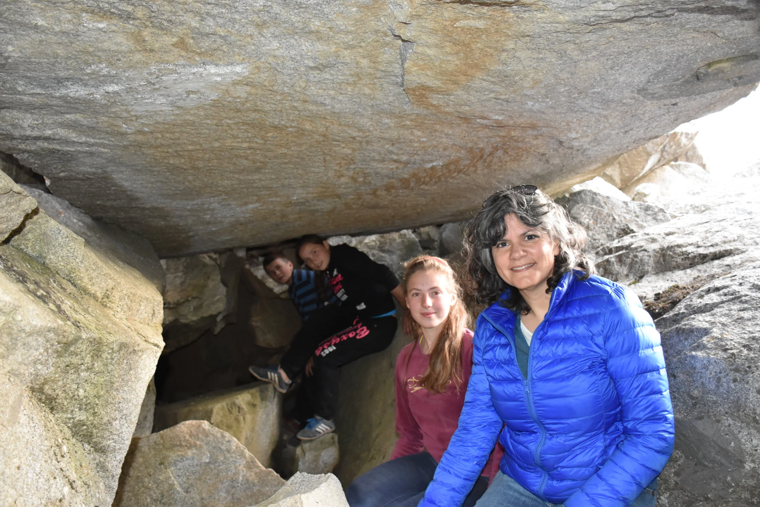 One rest day Papa pulled us all in a trailer behind his tractor into the mountains. When we couldn’t drive any longer we walked. We came across an avalanche. Papa and the big girls and I explored under a large rock.